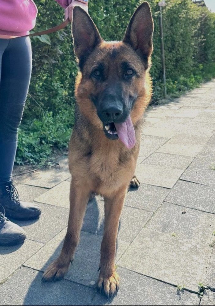 Theo ist ein 2,5 Jahre alter, reinrassiger Deutscher Schäferhund, der aufgrund von Überforderung seiner ehemaligen Familie bei uns abgegeben wurde. Er ist ein junger, kräftiger Rüde mit einem hohen Maß an Temperament und Wachsamkeit – Eigenschaften, die typisch für seine Rasse sind, aber eine erfahrene, konsequente und gleichzeitig feinfühlige Führung erfordern.